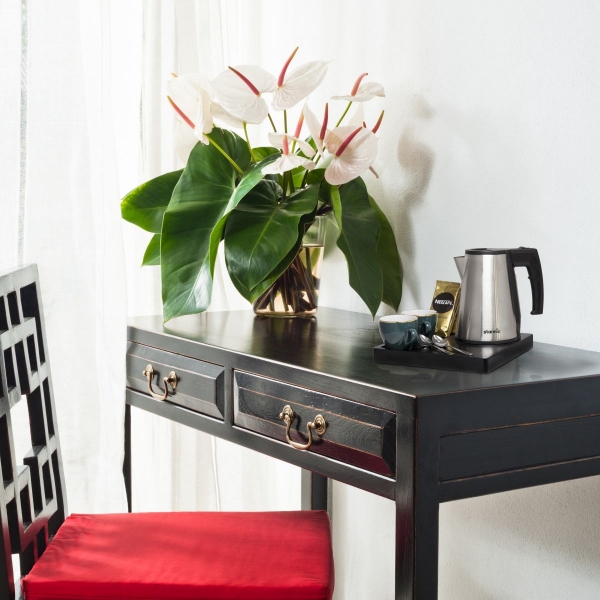 Pour un confort complet dans la chambre d'hôtes fournit la bouilloire sans fil WK 1,0 avec 1000 ml de volume de remplissage. Peut être combiné avec le plateau T 1. Nettoyage simple grâce à l'élément chauffant caché. Avec base 360° et câble intégré. Double technologie Safe *.