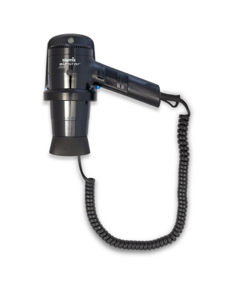 Sèche-cheveux tenus à la main de très haute qualité pour les hôtels / salles de bain de haute qualité, bien-être, fitness, piscine et sauna dans le monde entier. Support mural de sécurité avec veilleuse à détecteur. Pour une connexion électrique permanente. Avec interrupteur de sécurité selon VDE 0720.