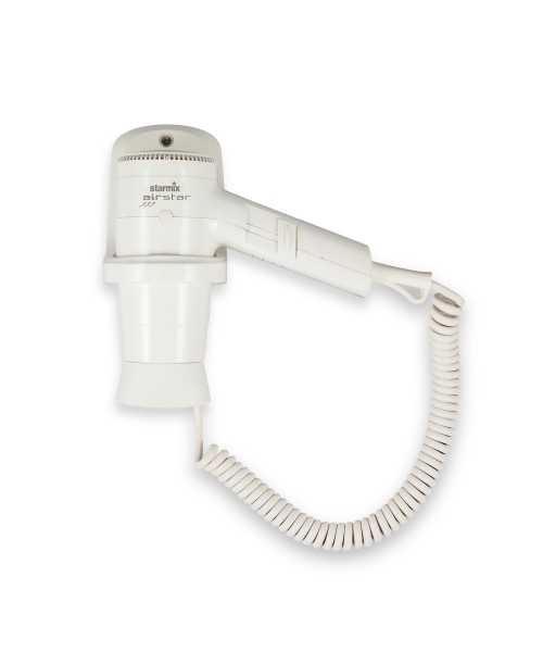 Sèche-cheveux tenus à la main de très haute qualité pour les hôtels / salles de bain de haute qualité, bien-être, fitness, piscine et sauna dans le monde entier. Support mural de sécurité avec veilleuse à détecteur. Pour une connexion électrique permanente. Avec interrupteur de sécurité selon VDE 0720.