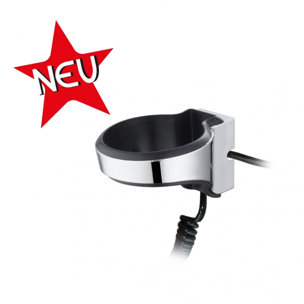 Le support mural avec revêtement en caoutchouc interne pour protéger le sèche-cheveux à main. Avec gestion des câbles antivol. Idéal pour les modèles de sèche-cheveux à main TFC et HF. Version en chrome.